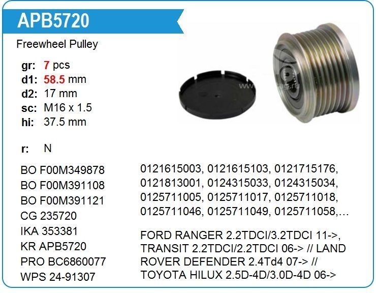 KRAUF APB5720 Шкив обгонный генератора FORD Transit 2006 Артикул: 978 2250 руб. под заказ Предполагаемый срок поставки: 20 января Заказать Поделиться: